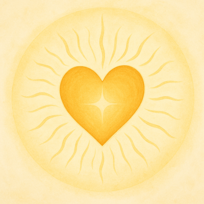 HeilSein-EinsSein „Golden strahlendes Herz im Lichtkreis – Symbol für Wert ohne Bedingungen und unantastbare Würde im Einen.“